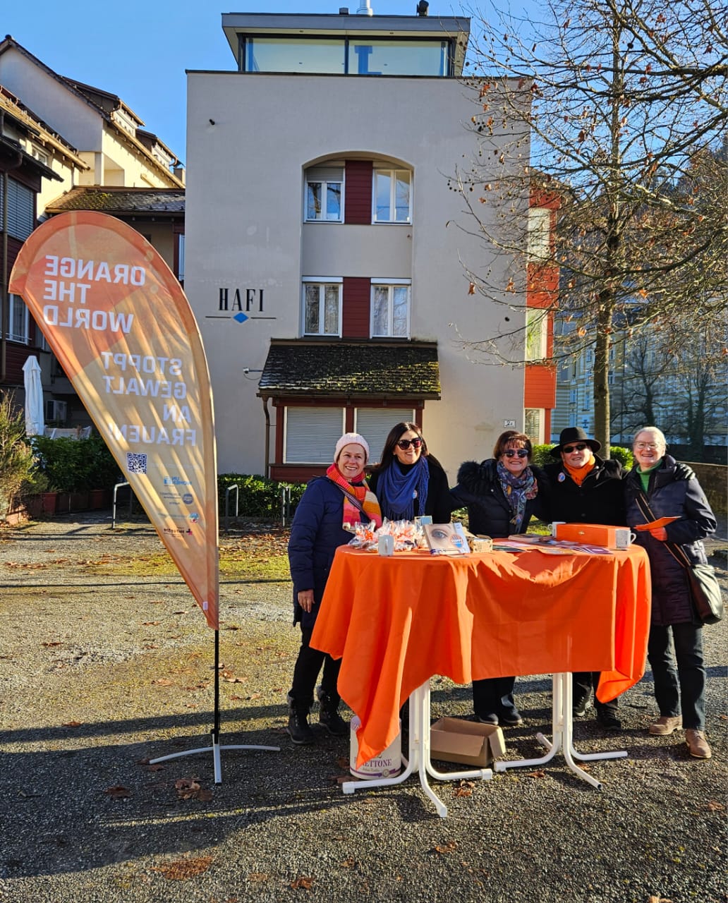 Der Illsteg in Feldkirch im orangefarbenen Kleid