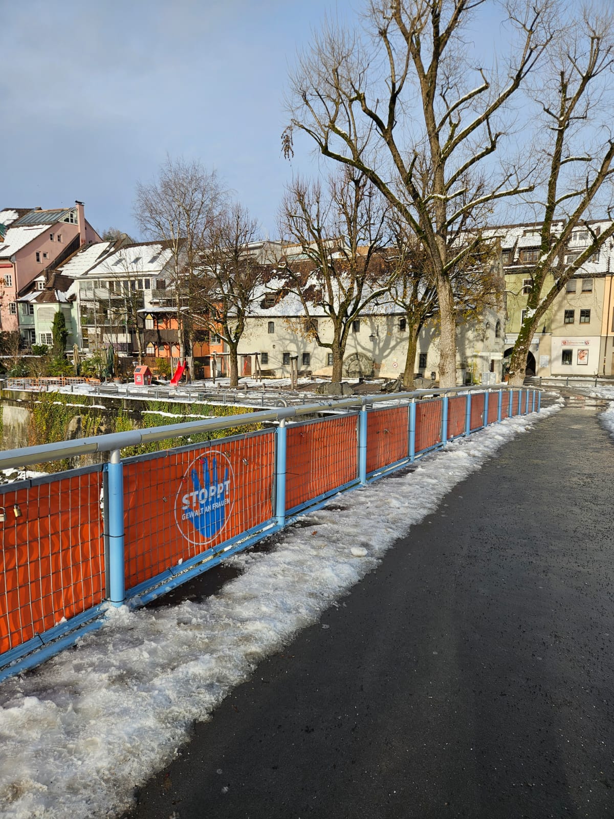 Der Illsteg in Feldkirch im orangefarbenen Kleid
