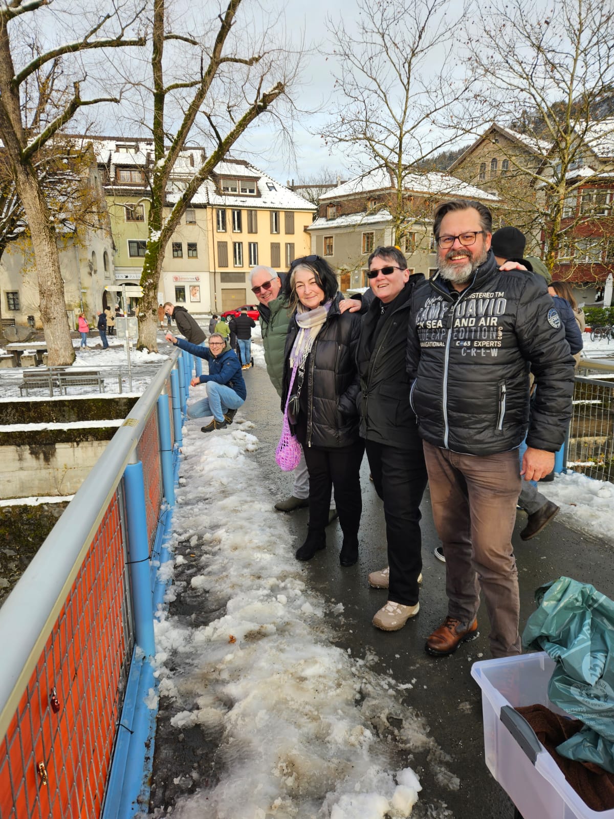 Der Illsteg in Feldkirch im orangefarbenen Kleid