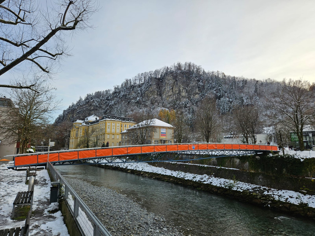 Der Illsteg in Feldkirch im orangefarbenen Kleid