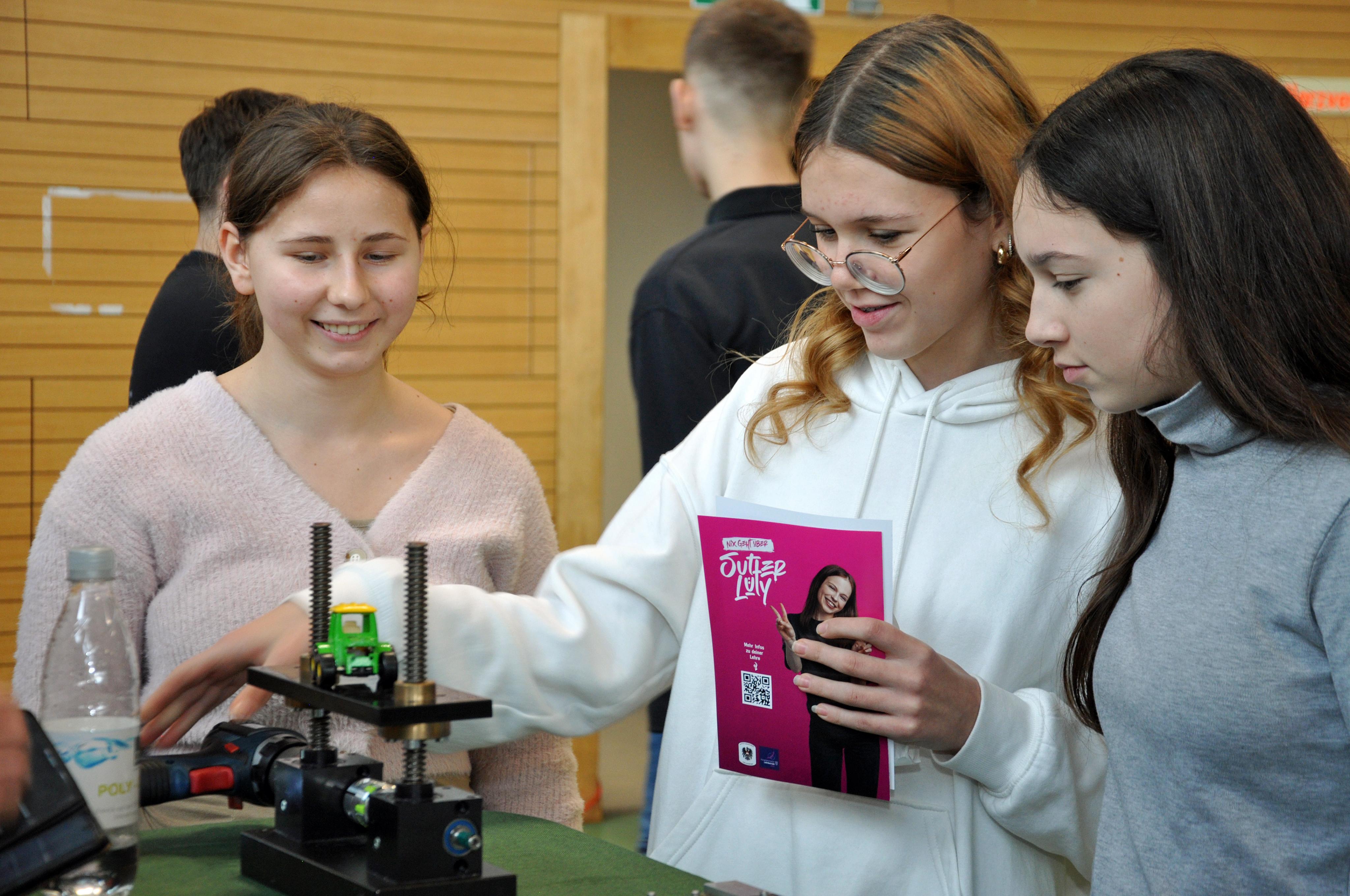 Schüler probierten Werkzeuge und technische Geräte an den Ständen der Betriebe aus.