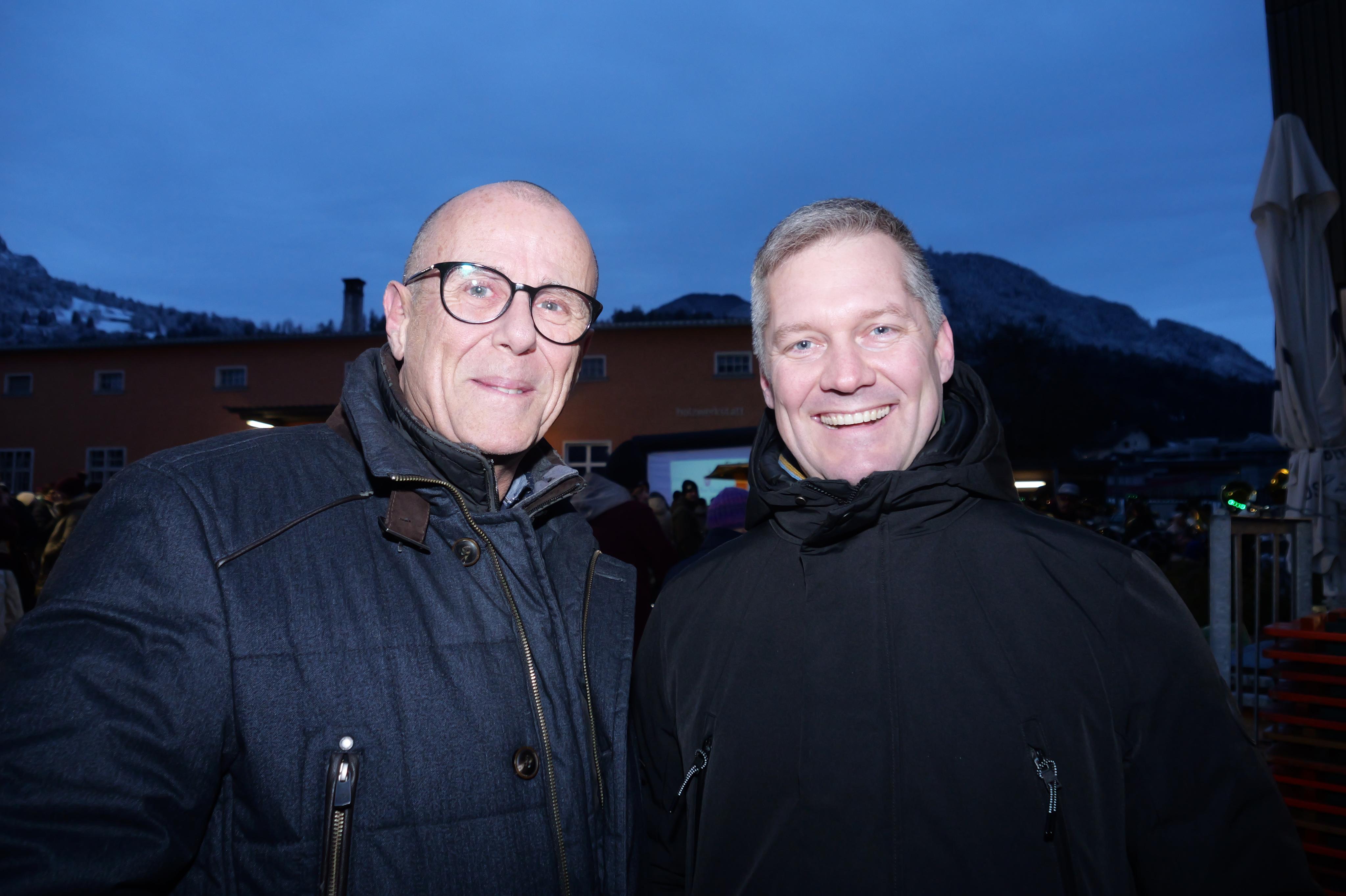 Fröhliche Faschingsfans: Auch Bürgermeister Walter Gohm und Musikverein Frastanz Obmann Johannes Decker ließen sich das bunte Spektakel nicht entgehen.