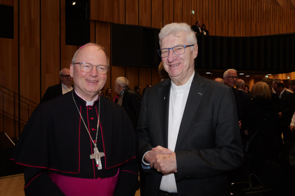 Diözesanbischof Benno Elbs und Ehrenringträger Monsignore Rudolf Bischof.