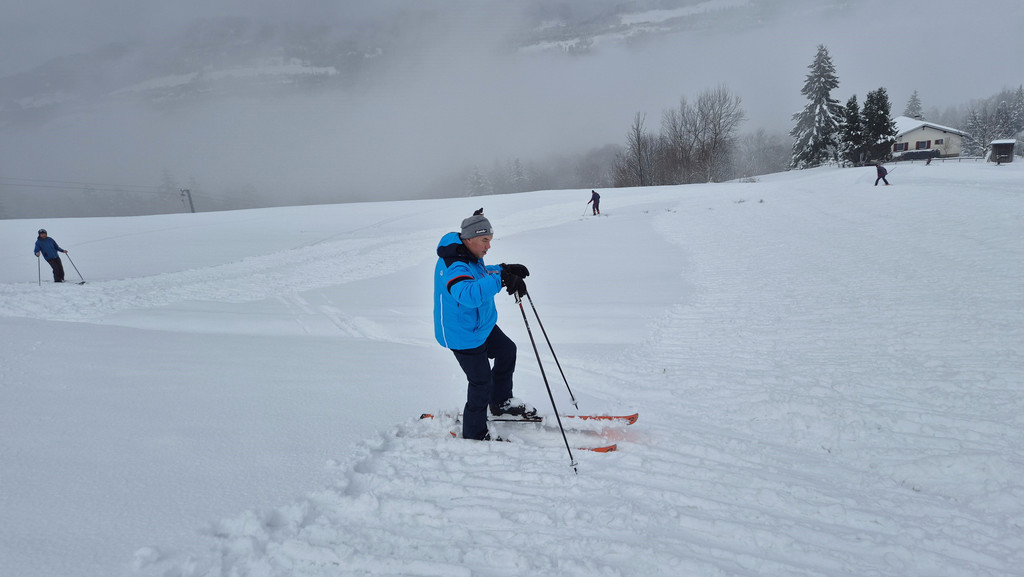 „Antrippeln“ hieß die Devise am 24. Dezember 2024 beim Übungslift am Schneiderkopf. (© Dietmar Grießer)