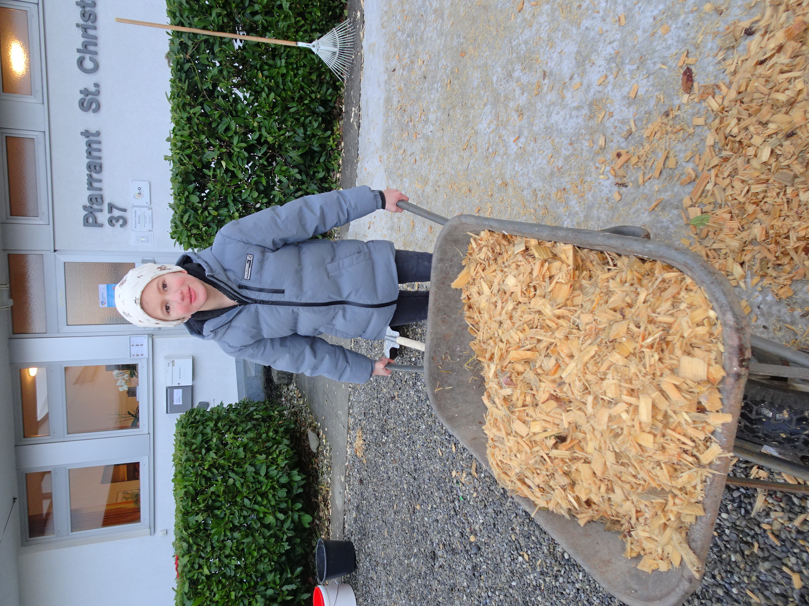 Pius drehte gleich mehrere Runden mit seiner Schubkarre.