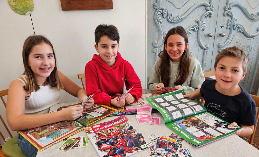 Auch Flora, Vincent, Felipa und Wendelin sind in den Energieferien mit ihren Alben von ADEG, BILLA und SPAR bei den Stickertauschtagen im GWL (2. Stock) in Bregenz bzw. im Lochauer Brockenhaus-Cafe mit dabei.