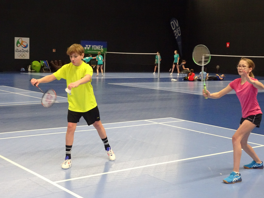 Die jungen Badminton-Talente kämpfen um jeden Punkt.