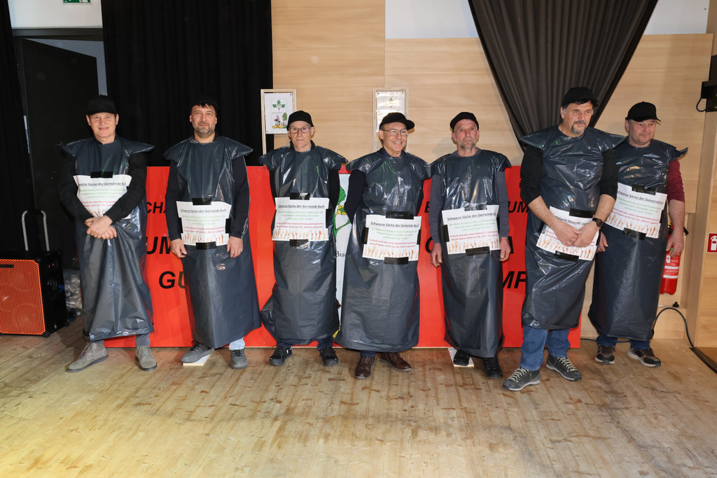 Die „schwarzen Säcke“ der Gemeinde Buch spielten bei der humorigen Absetzung eine zentrale Rolle beim „närrischen Pfandrückgabesystem“.