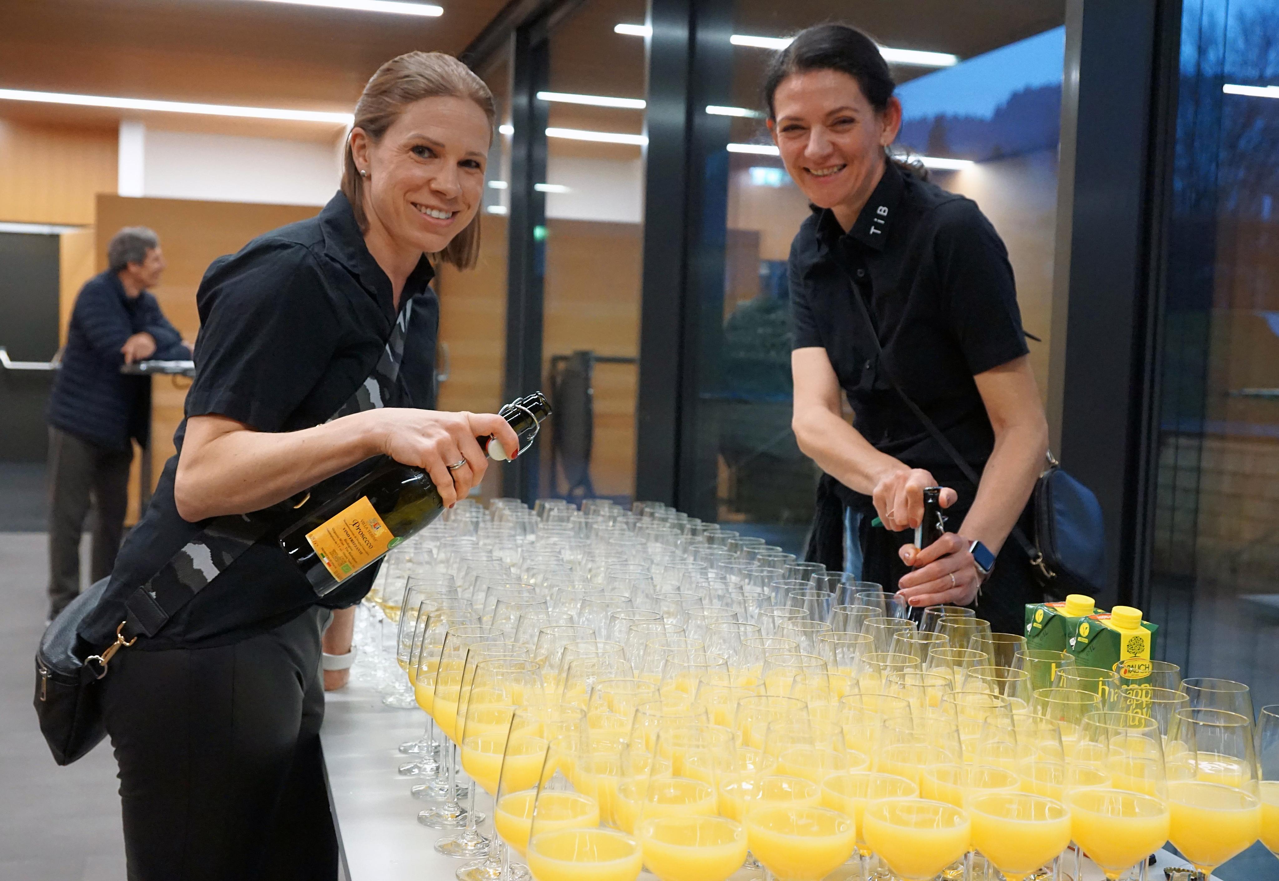 Sabine und Claudia (Theater in Buch) hatten beim Sektempfang alle Hände voll zu tun.