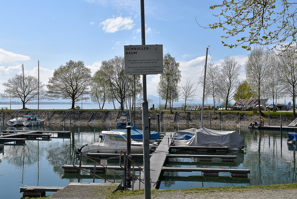 Schnullerbaum am Lochauer Hafen wird mit "Nachschub" versorgt