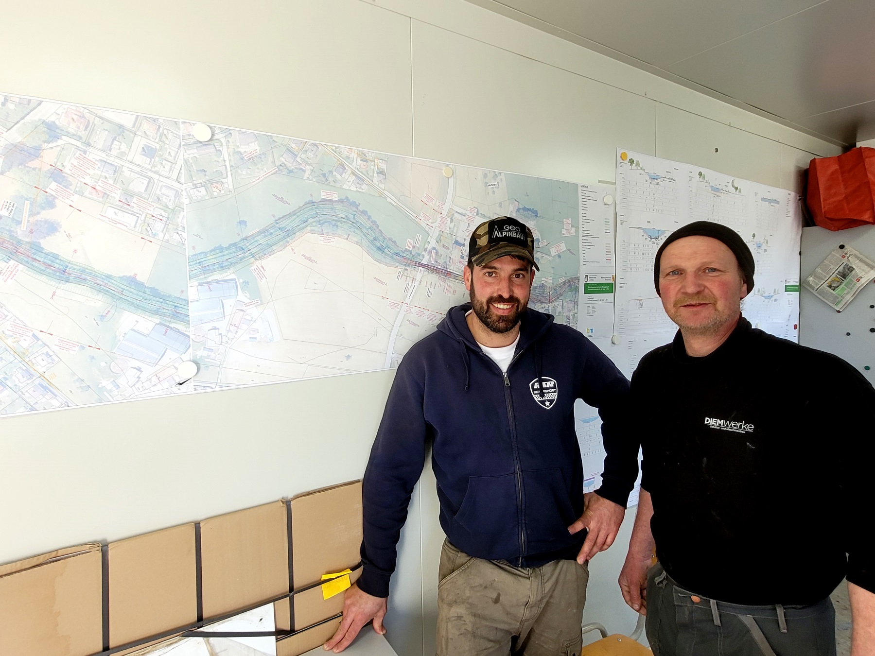 Bauleiter Markus Schneider (Geo-Alpinbau/Niederlassung Egg) mit Richard Faisst (Gemeinde Lochau / Ausschuss Straßen, Wasser und Kanal).