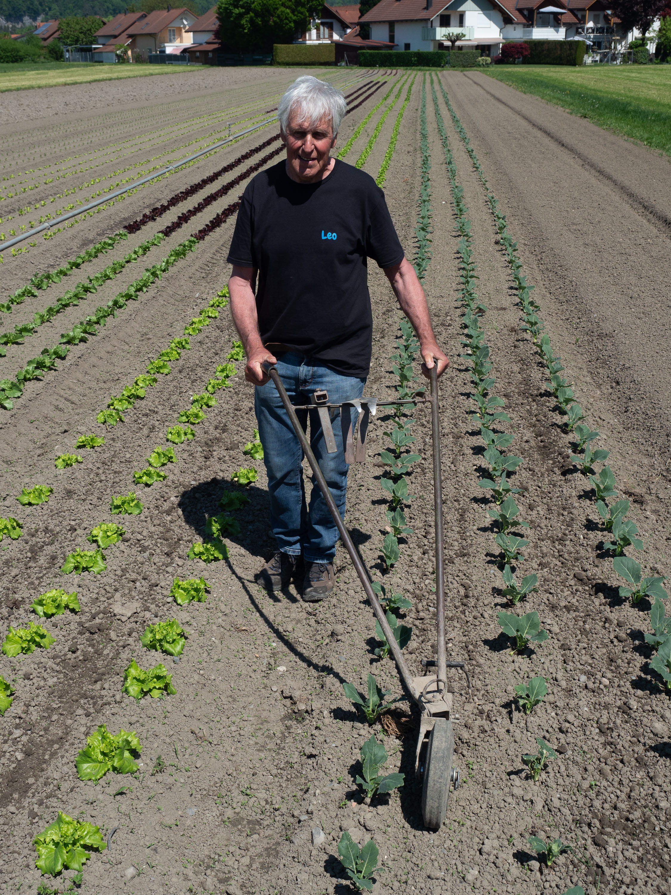 Leopold Meusburger mit der Eigenbauunkrautemaschine