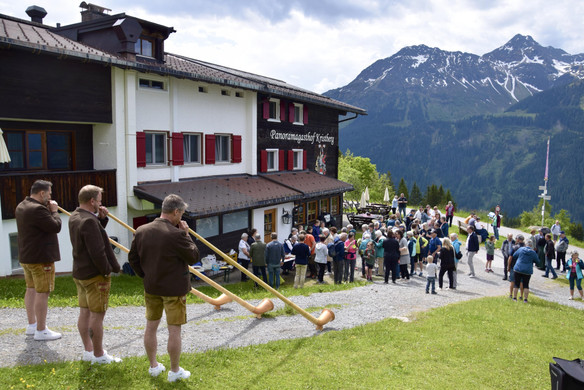 Die Montafoner Alphornfreunde musizieren während der Agape