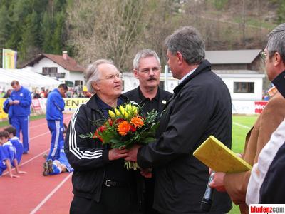 Blumen für Helmut Kischka, Präsident des Club A. S. R.