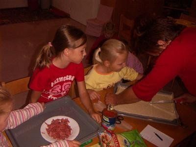 jedes Kind darf seine Pizza selbst belegen..