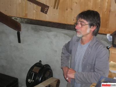 Luis Amann, Rudi Gassner und Walter Küng bereitetn die Säge für ihren Jungfernschnitt vor.