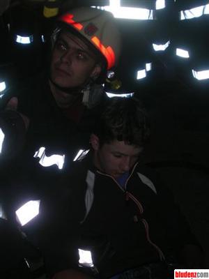 Eingeschlossene und Verletzte werden geborgen, von der bereitstehenden Rettung im Zelt versorgt.