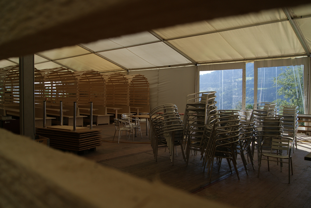 Ein schneller Blick Richtung Cafe bei den Aufbauarbeiten