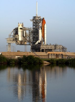 "Discovery" auf der Startrampe vor dem Flug zur ISS