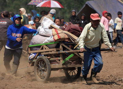 Betroffene bringen ihre Habseligkeiten in Sicherheit.