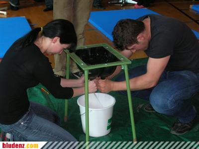 Frau und Mann legten Hand an beim Melkwettbewerb