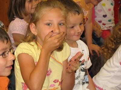 Kg. Nenzing: Clownfrau Blombiene besucht die Kinder