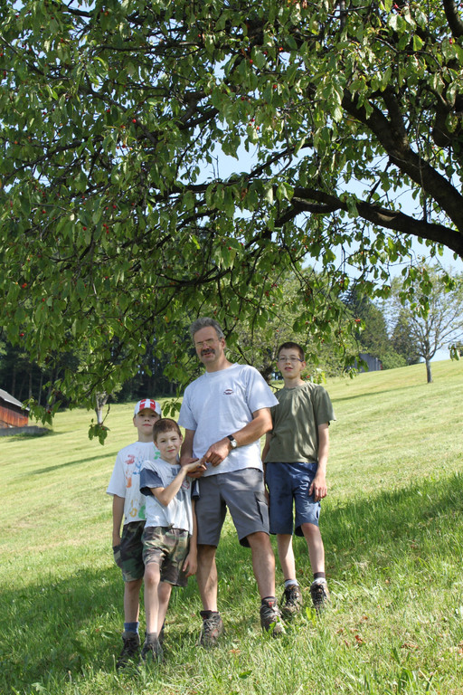 Bertram Nachbaur (Obmann Obst- und Gartenbauverein Fraxern) mit seinen Söhnen kurz vor dem "Kriasi-Gwinna"