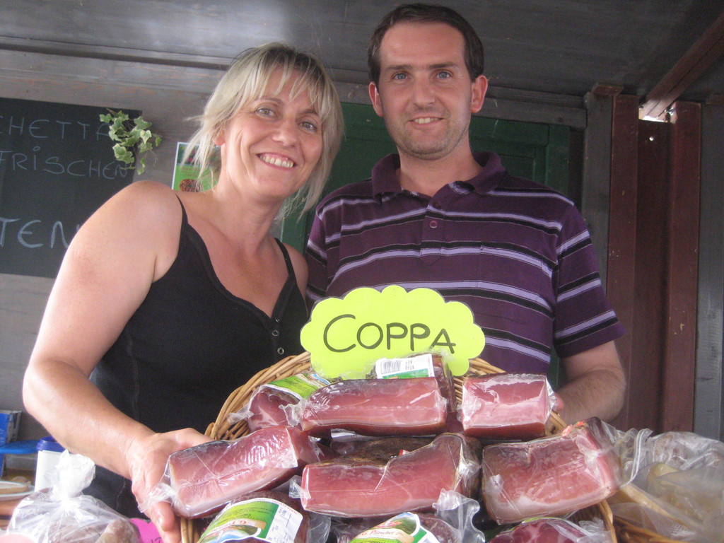 Christian und Roswitha mit feinem Schinkenspeck aus Südtirol.