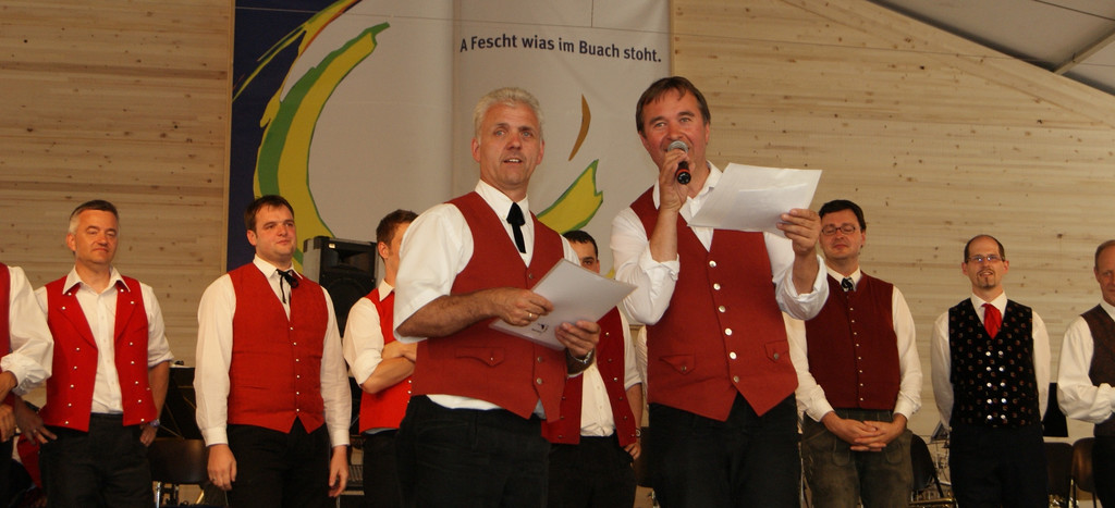 Festobmann Hubert Sinz und Kpm. Stefan Meusburger bei der Bekanntgabe der Ergebnisse