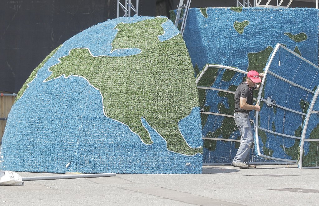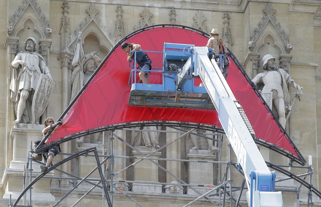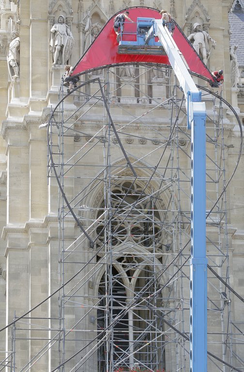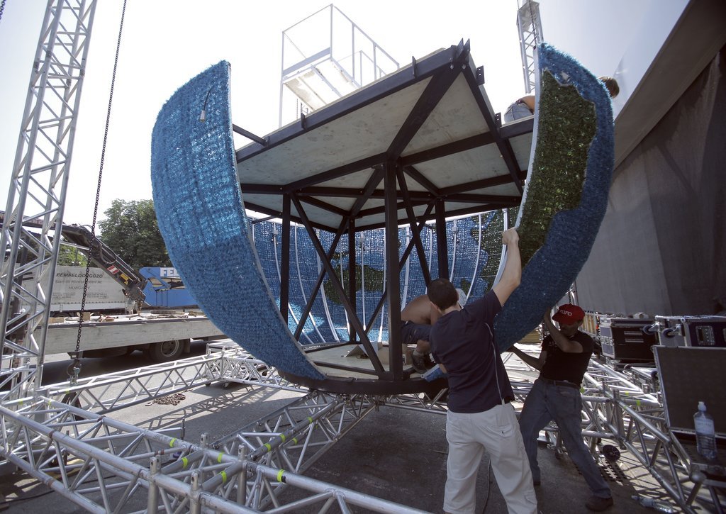 Aufbauarbeiten zum 18. Life Ball am Rathausplatz in Wien