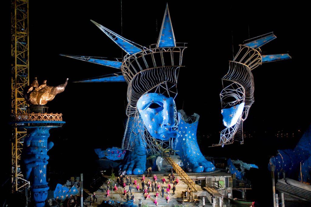 Bregenzer Seebühne bei Nacht