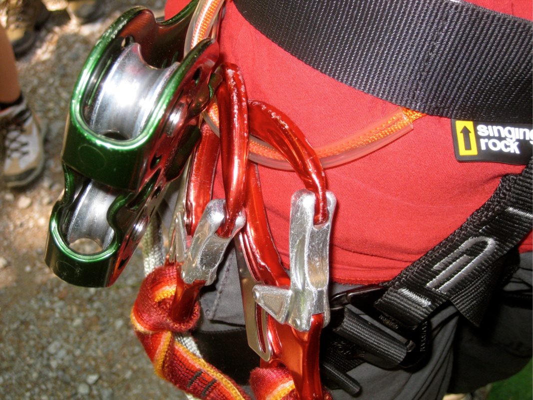 Ausrüstung wie Helm und Klettergurt können ausgeliehen werden