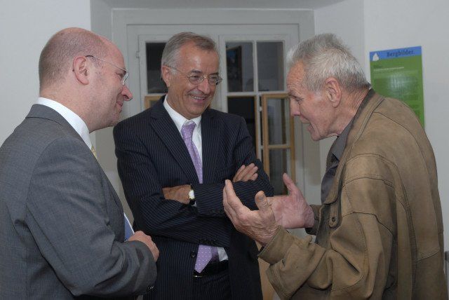 Im Montafoner Heimatmuseum in Schruns: Dr. Andreas Rudigier, Leiter des Bereichs Kulturwissenschaft im Stand Montafon, LH Dr. Herbert Sausgruber sowie der bergerfahrene Gastronom Traugott Zint. (Foto: Gerhard)