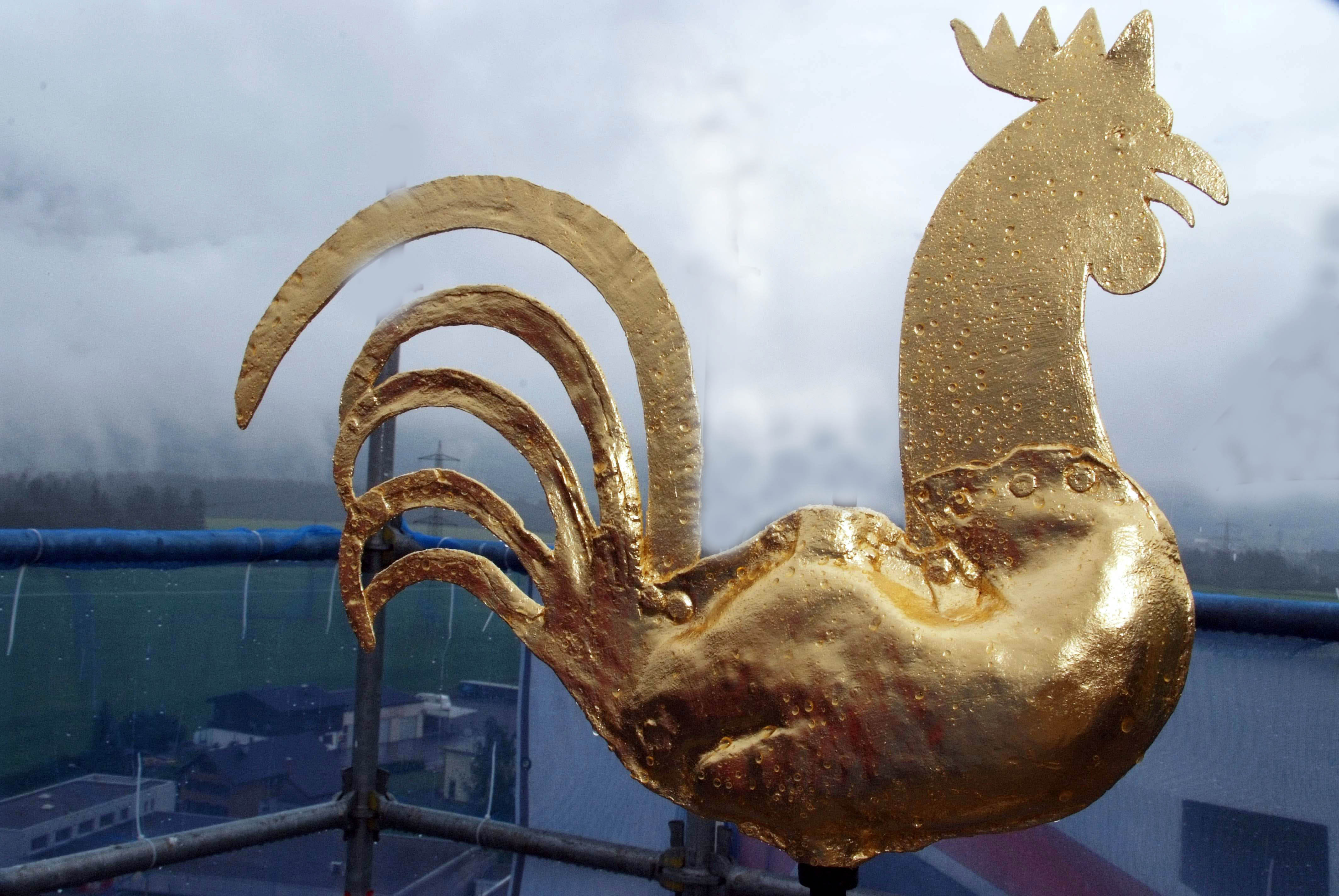 Leuchtet in neuer Goldmakulatur von der Kirchturmspitze: der Wetterhahn