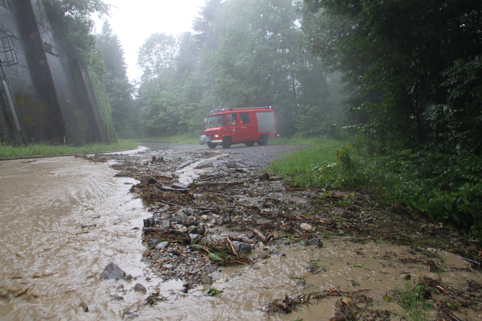 Gleich an mehreren Stellen wurde die L14 überflutet