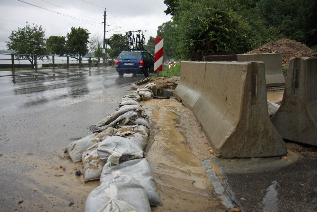 Aufräumarbeiten nach dem Hochwasser in Lochau