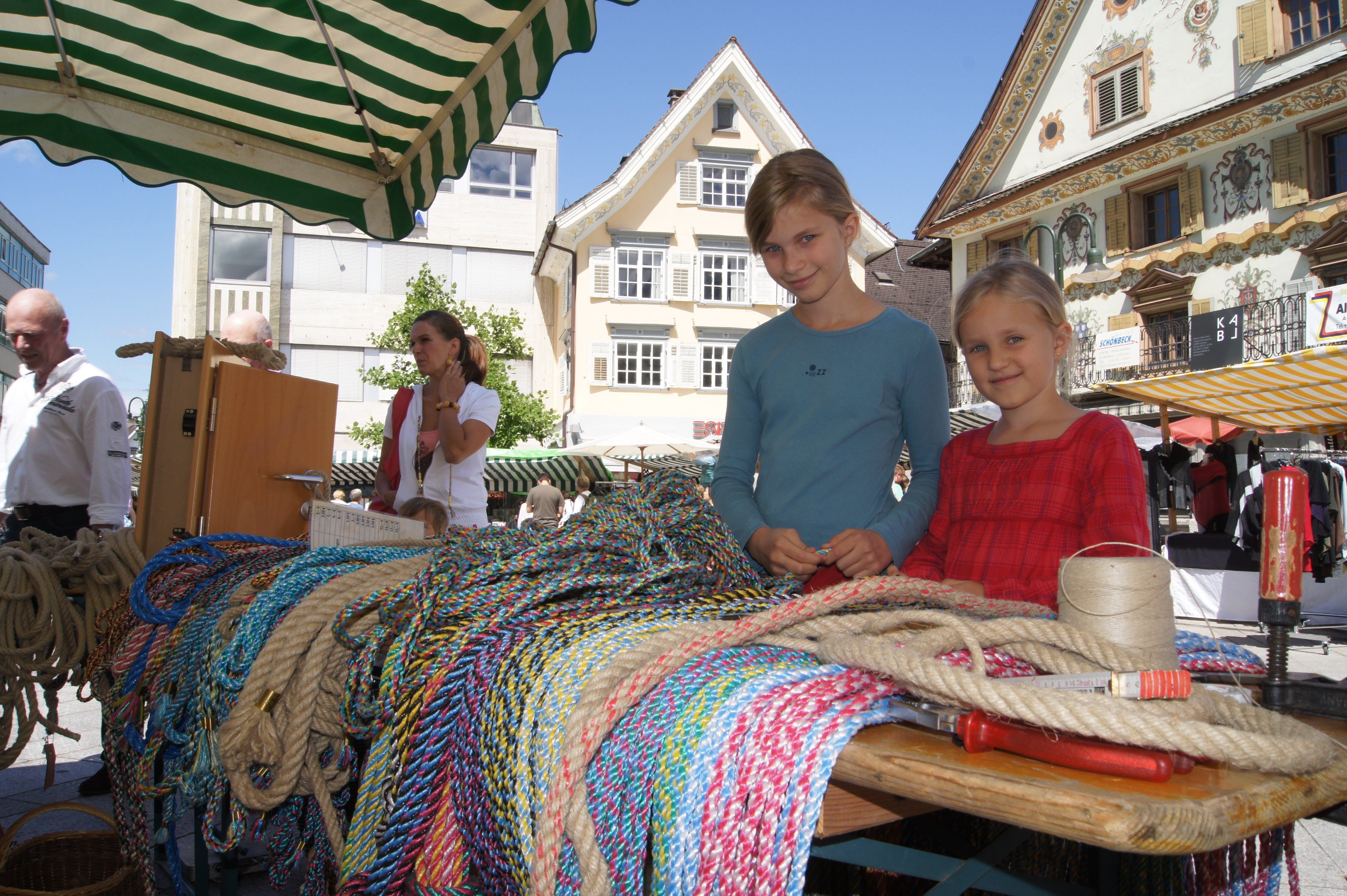 Luisa und Teresa suchen sich ein schönes Seil aus.