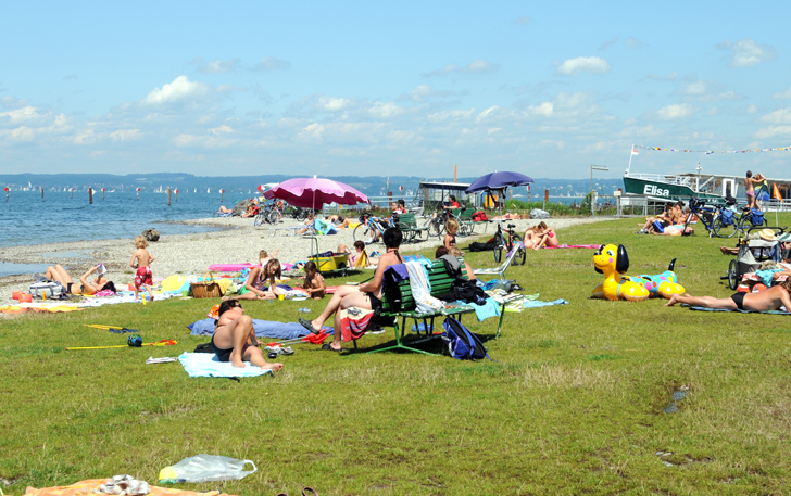 Badegäste am Rohrspitz im August 2010
