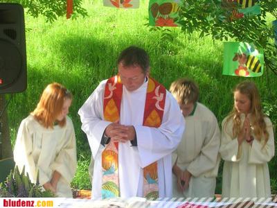 Gottesdienst mit Pfr. Alois Erhart, umrahmt und mitgestaltet von den Volksschulkindern Wald a. A. und einer Bläsergruppe der Harmoniemusik Dalaas.
