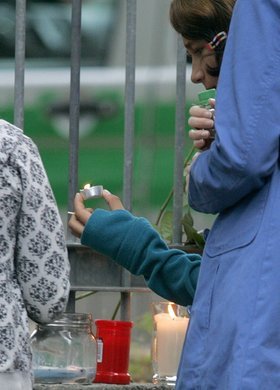 Blumen und Kerzen an der Schule
