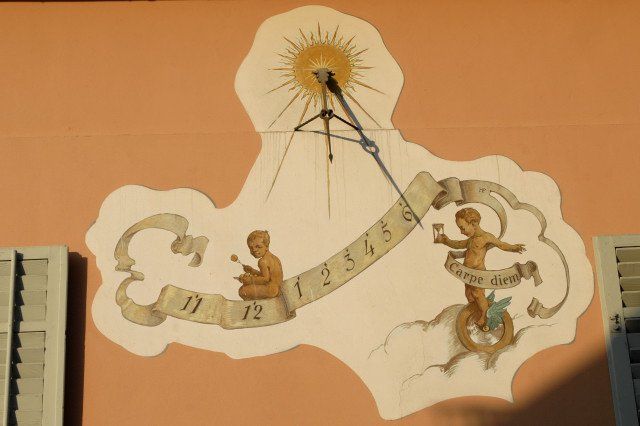 Sonnenuhr im Zentrum von Schruns. (Foto: Gerhard)