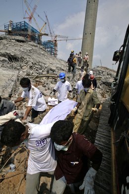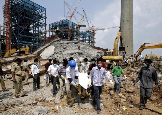 Schlot auf Baustelle in Indien eingestürzt
