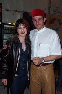 Die glückliche Gewinnerin der Lederjacke, Susanne Schindler mit Gastgeber Nikolaus Lorenzin.