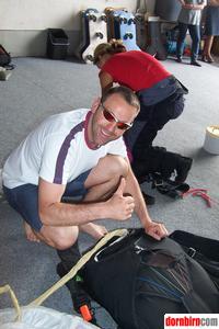 Markus richtet seinen Schirm für den nächsten Sprung.