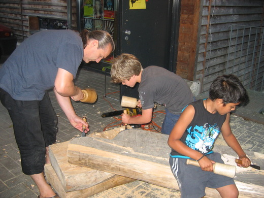 Viele fleißige Hände lassen das Totem entstehen