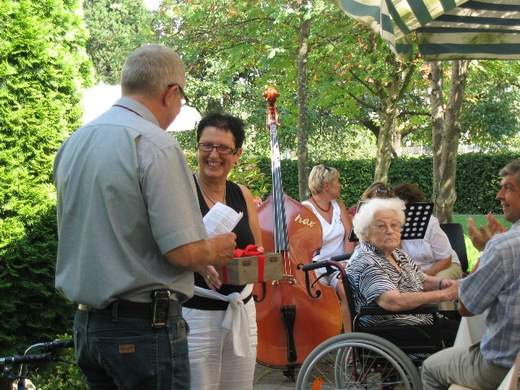 Heimleiter Gerhard Sinz übergibt an Frau Vizebürgermeisterin Doris Rohner ein Kästchen voller Erinnerungen.