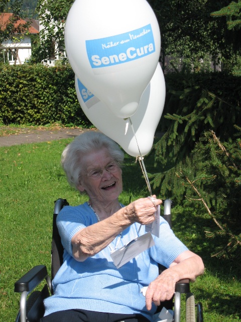 Bewohnerin Irma Tatschl freut sich auf das neue Heim und lässt ihre Wünsche in den Himmel