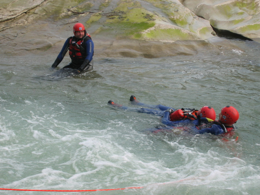 Wildwasserübung der Wasserrettung in der Bregenzer Ache
