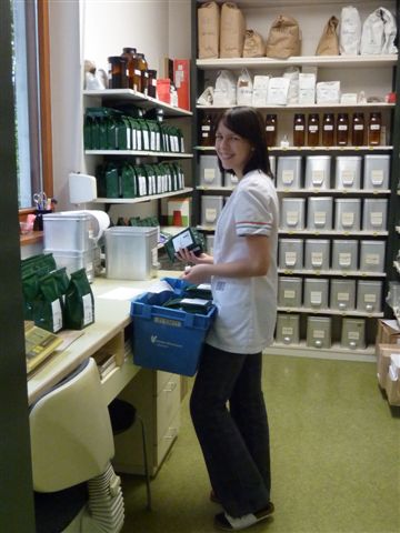 Lehrling Angela in der Teekammer
