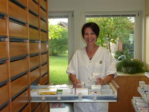Gallery MeineGemeinde Frastanz Walgau Apotheke 1959-2009 PKA Anita beim VEr__umen der Arzneimittel.JPG